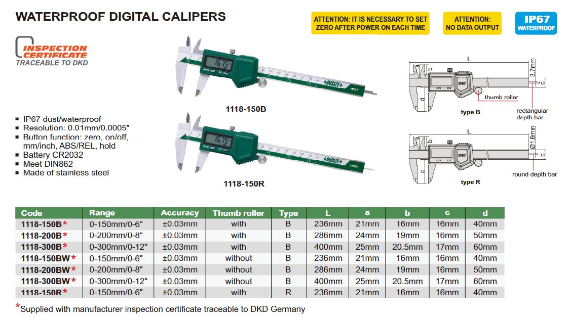 INSIZE 1118-300BW digitální posuvné měřítko vodotěsné 0-300mm / 0-12" (IP67)
