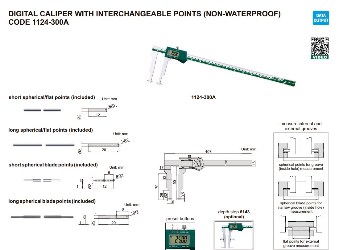 INSIZE 1124-300A digitální posuvné měřítko s výměnnými měřicími doteky 0-300mm / 0,01mm