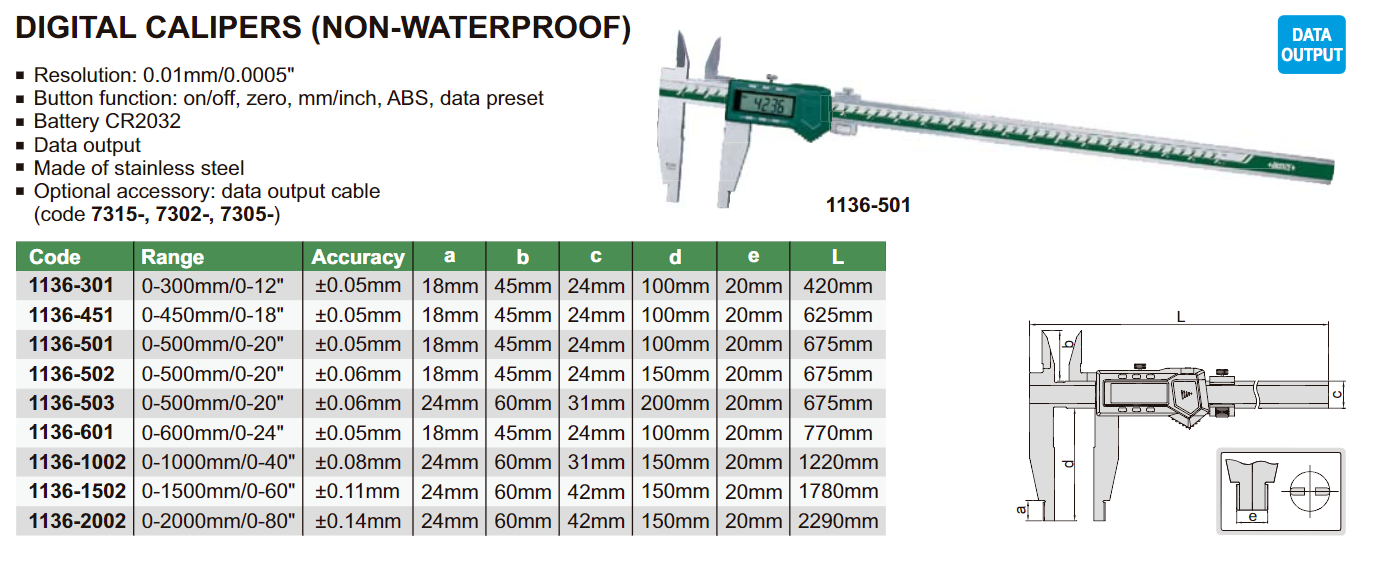 INSIZE 1136-501 dlouhé posuvné měřítko 0-500mm DIGI