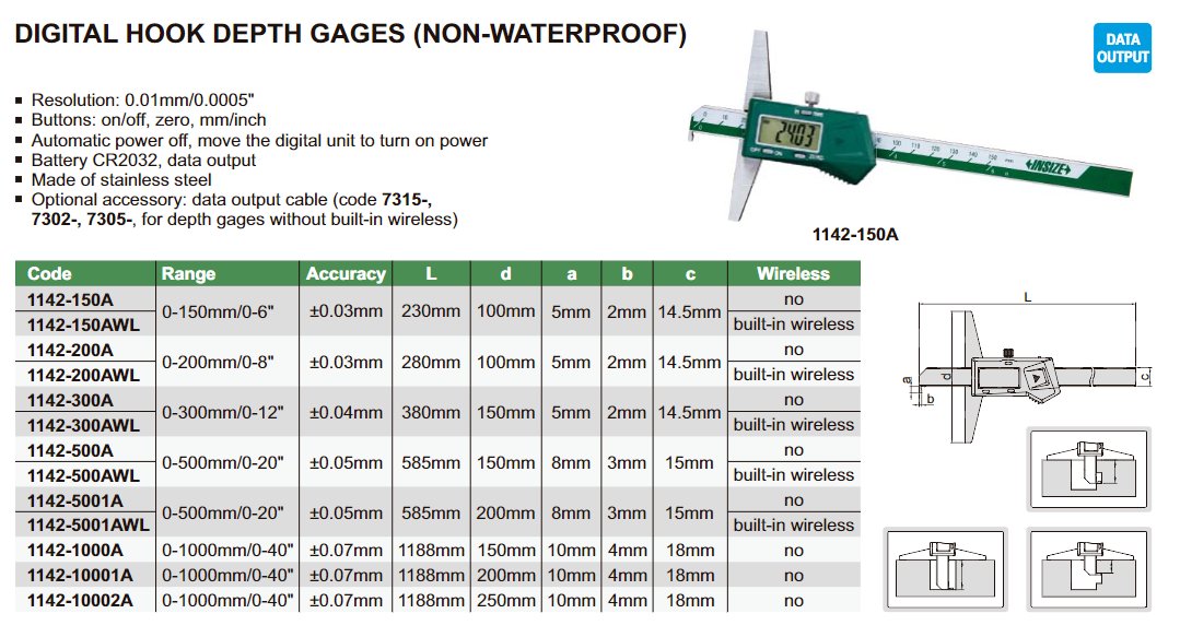 INSIZE 1142-300A Digitální hloubkoměr s nosem 0-300mm