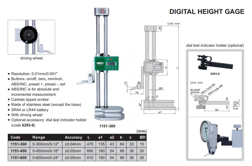 INSIZE 1151-450 digitální výškoměr 450mm