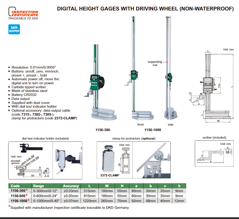 INSIZE 1156-1000 digitální výškoměr s posuvovým kolečkem