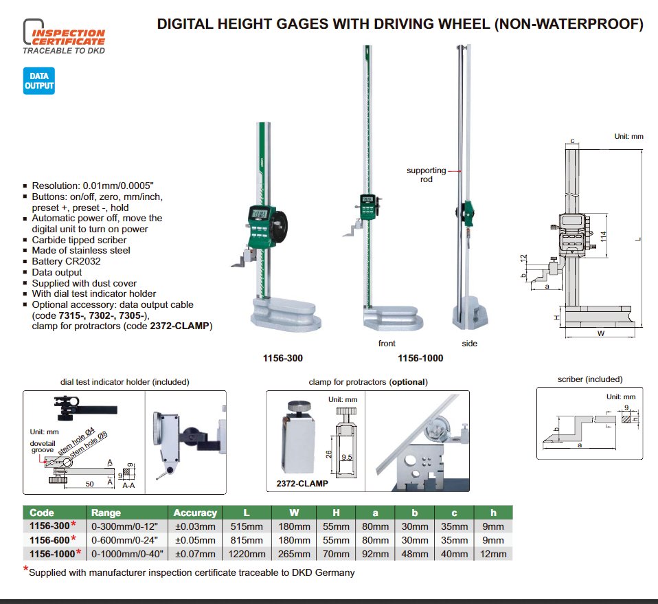 INSIZE 1156-300 digitální výškoměr s posuvovým kolečkem