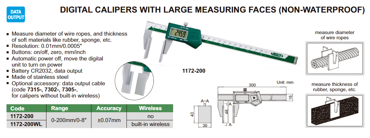 INSIZE 1172-200 digitální posuvné měřítko s rozšířenou plochou měřících ramen