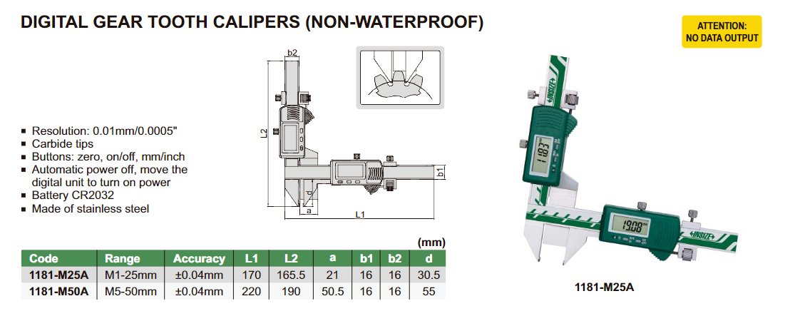INSIZE 1181-M50A digitální posuvné měřítko pro ozubená kola M5-50mm