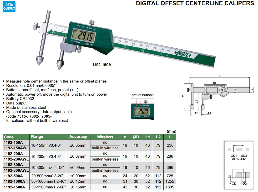 INSIZE 1192-1000A digitální posuvné měřítko pro měření rozteče děr 30-1000mm / 0,01mm