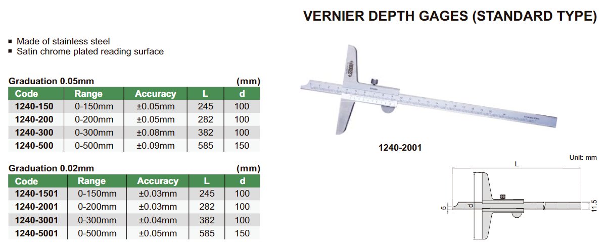 INSIZE 1240-200 Analogový hloubkoměr standard 0-200mm / 0,05 mm