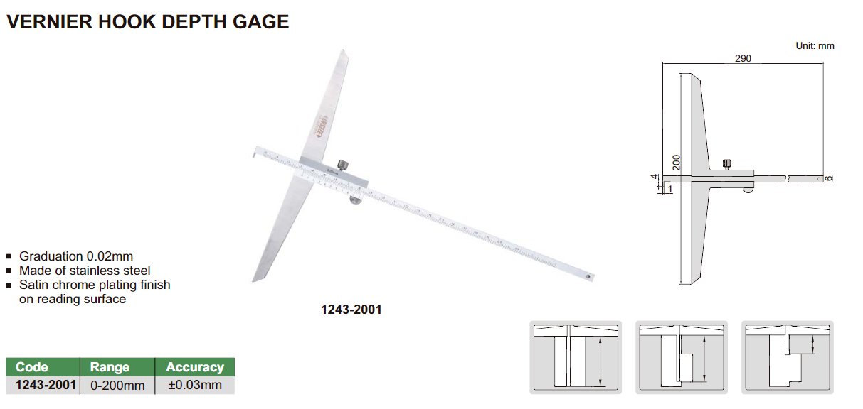INSIZE 1243-2001 analogový hloubkoměr s širokou základnou