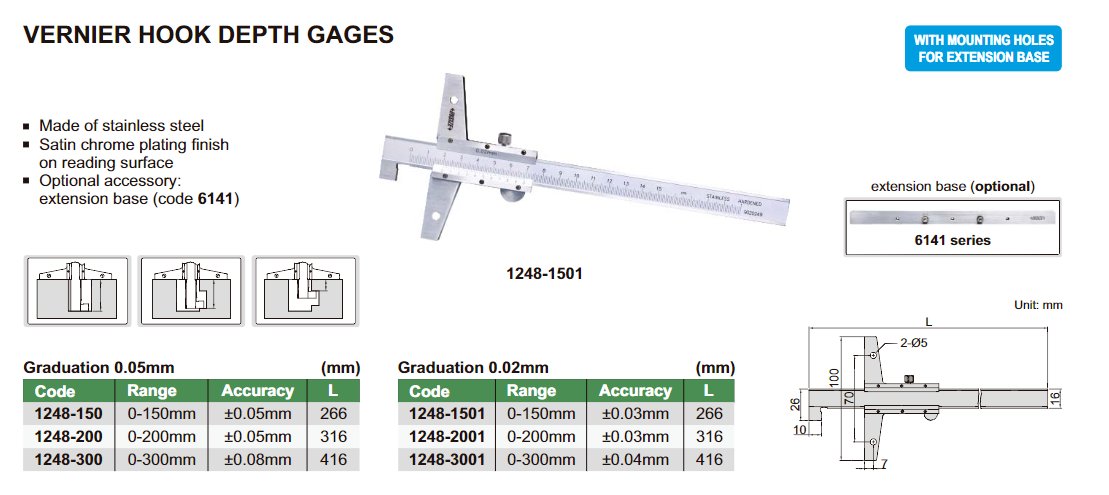 INSIZE 1248-150 analogový hloubkoměr s nosem a montážními otvory