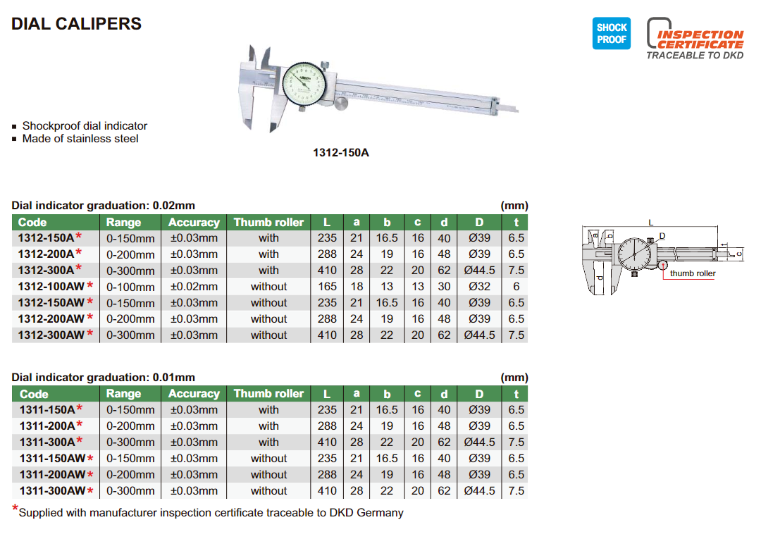 INSIZE 1312-200AW posuvné měřítko s kruhovým číselníkem