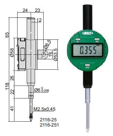 INSIZE 2116-25F digitální úchylkoměr METRIC 25,4mm / 0,01mm / 20µm ( plochá záda )