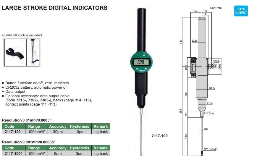 INSIZE 2117-100 digitální úchylkoměr 0-100mm / 0,01