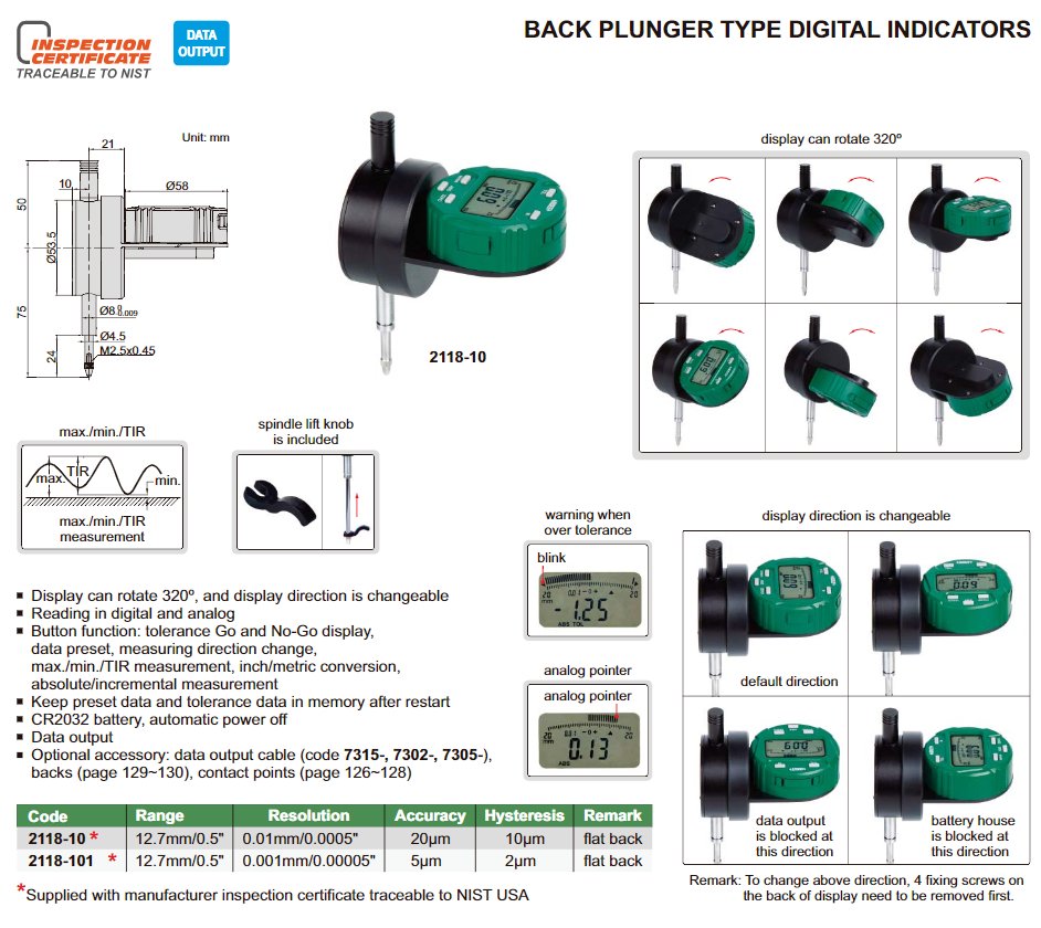 INSIZE 2118-10 digitální úchylkoměr 12,7mm/0,5" / 0,01 / 20µm s nastavitelným úhlem pohledu