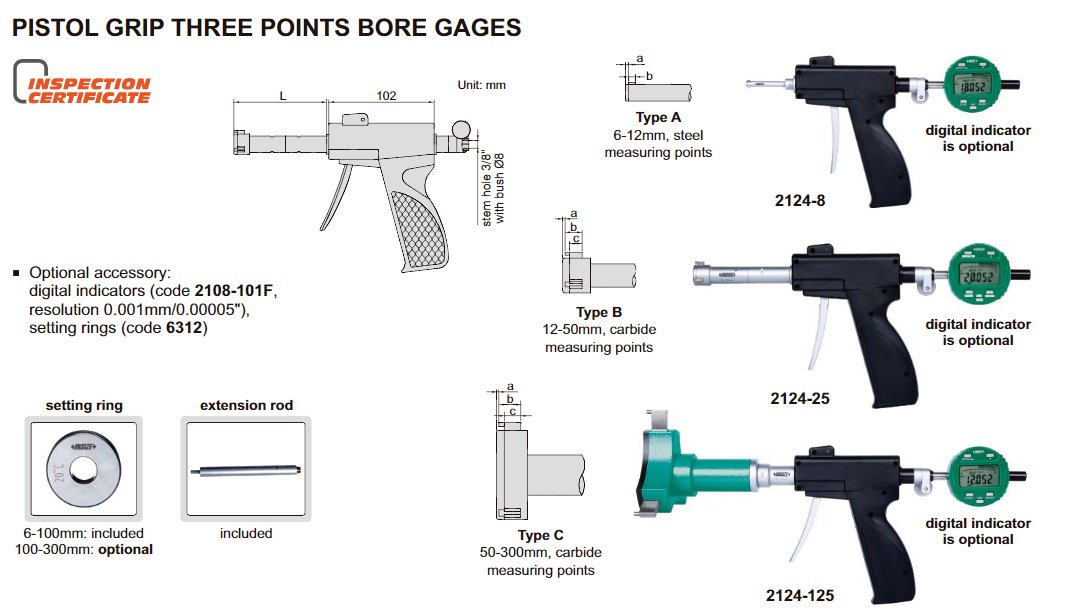 INSIZE 2124-S1004 sada samostředících třídotekových dutinoměrů 50-100mm
