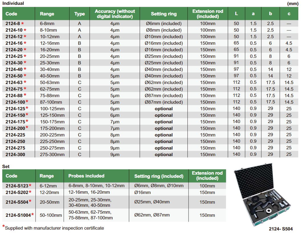 INSIZE 2124-S123 sada samostředících třídotekových dutinoměrů 6-12mm