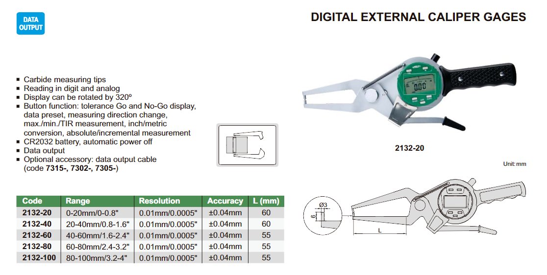 INSIZE 2132-20 digitální úchylkoměr s měřicími rameny pro vnější měření 0-20mm / 0,01mm