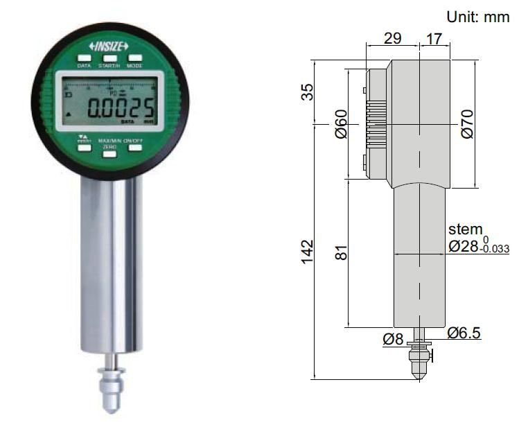 Digitální úchylkoměr INSIZE ULTRAPRECISION s rozsahem měření 0-6 mm/0-0,24″ a přesností měření 1,6µm. Tento precisní digitální úchylkoměr umožňuje bezdrátový přenos dat viz. katalogový list a příslušenství pro přenos dat.