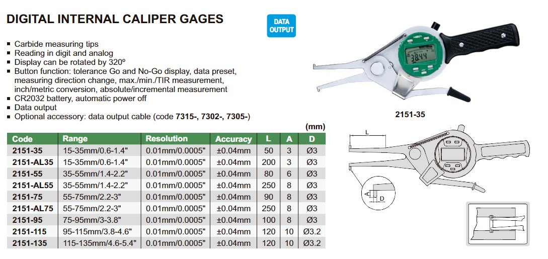 INSIZE 2151-AL35 digitální úchylkoměr s měřicími rameny pro vnitřní měření 15-35mm / 0,01mm