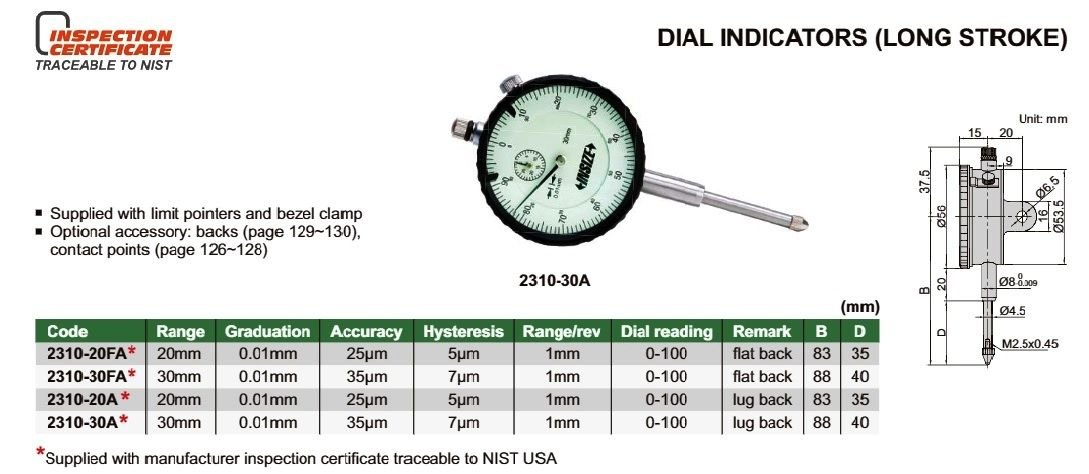 INSIZE 2310-30FA Číselníkový úchylkoměr