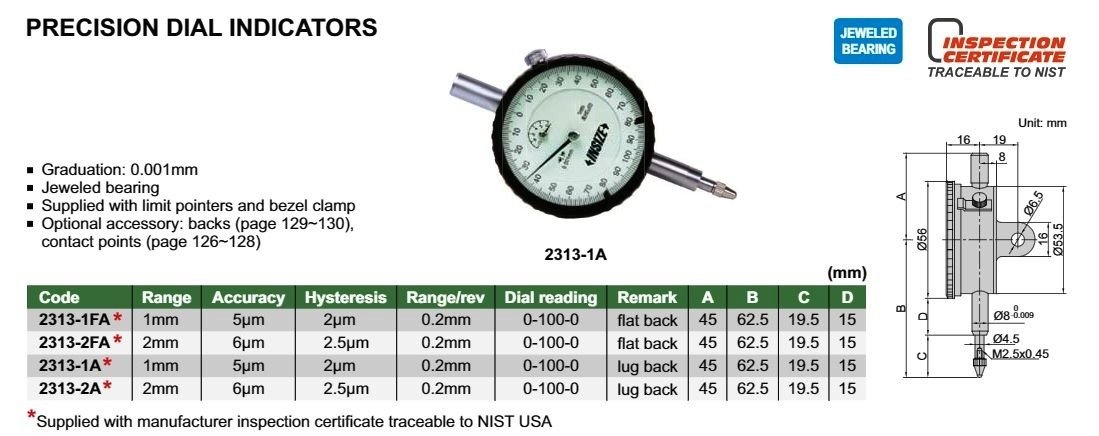 INSIZE 2313-2A Precisní číselníkový úchylkoměr ( 0,001 )