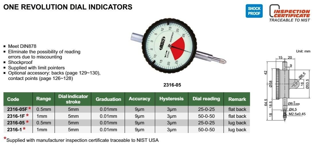 INSIZE 2316-05 úchylkoměr s jednou otáčkou