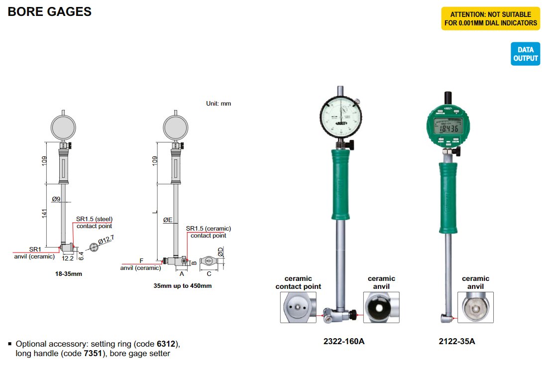 INSIZE 2322-250A dutinoměr 160-250mm s číselníkovým úchylkoměrem