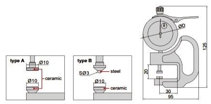 Tloušťkoměr je v provedení s talířkovými doteky z keramiky.