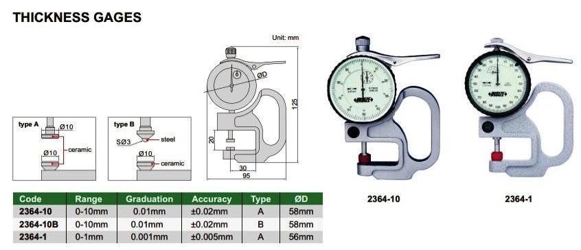 INSIZE 2364-1 Číselníkový tloušťkoměr 0-1 mm s přesností 0,005 mm
