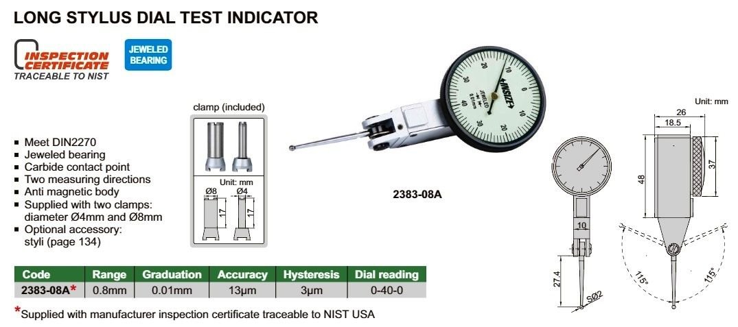 INSIZE 2383-08A páčkový číselníkový úchylkoměr