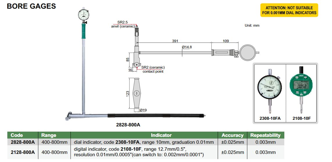 INSIZE 2828-800A dutinoměr 400-800mm s číselníkovým úchylkoměrem