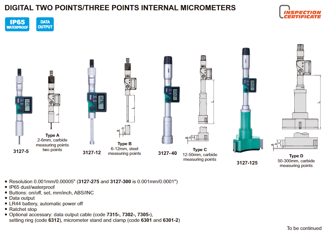 INSIZE 3127-202 SADA digitálních tříbodových dutinoměrů 12-20mm / 0,001mm (IP65)