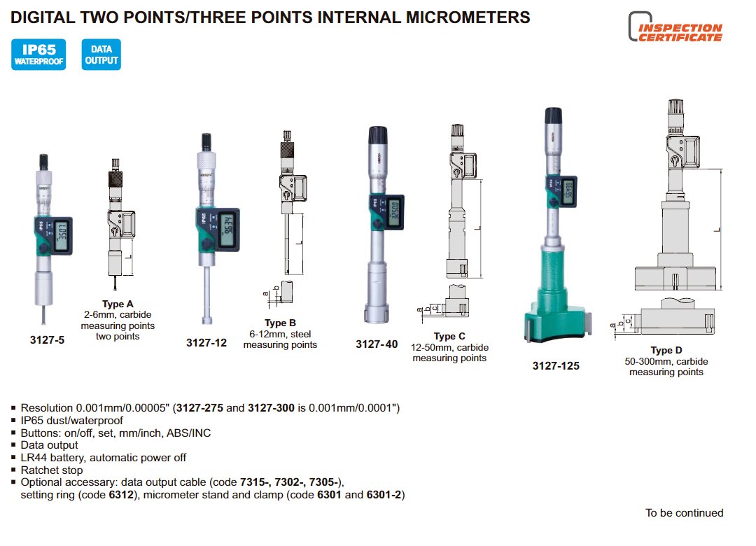 INSIZE 3127-3 digitální tříbodový dutinoměr 2,5-3mm / 0,001mm (IP65)