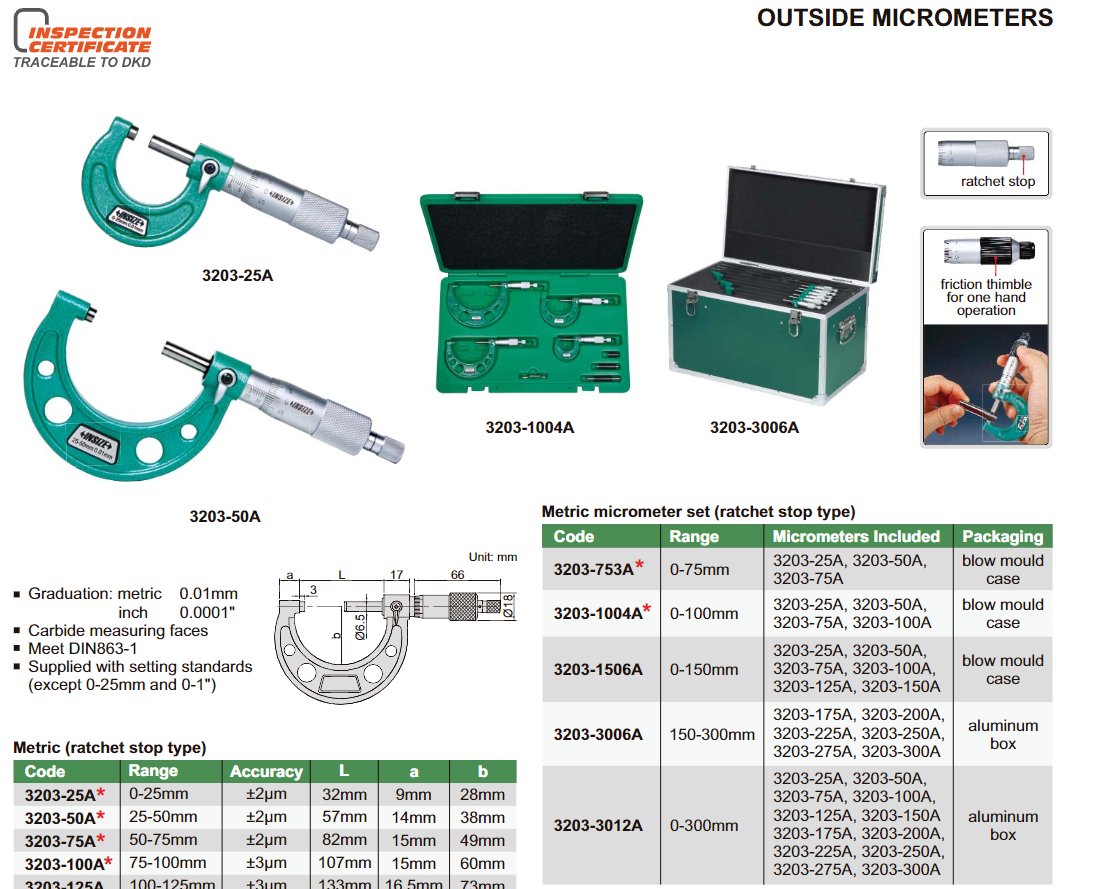INSIZE 3203-125A analogový mikrometr 100-125mm / 0,01mm
