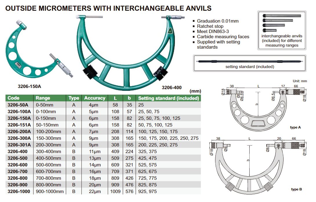 INSIZE 3206-150A Mikrometr třmenový 0-150mm / 0,01 mm