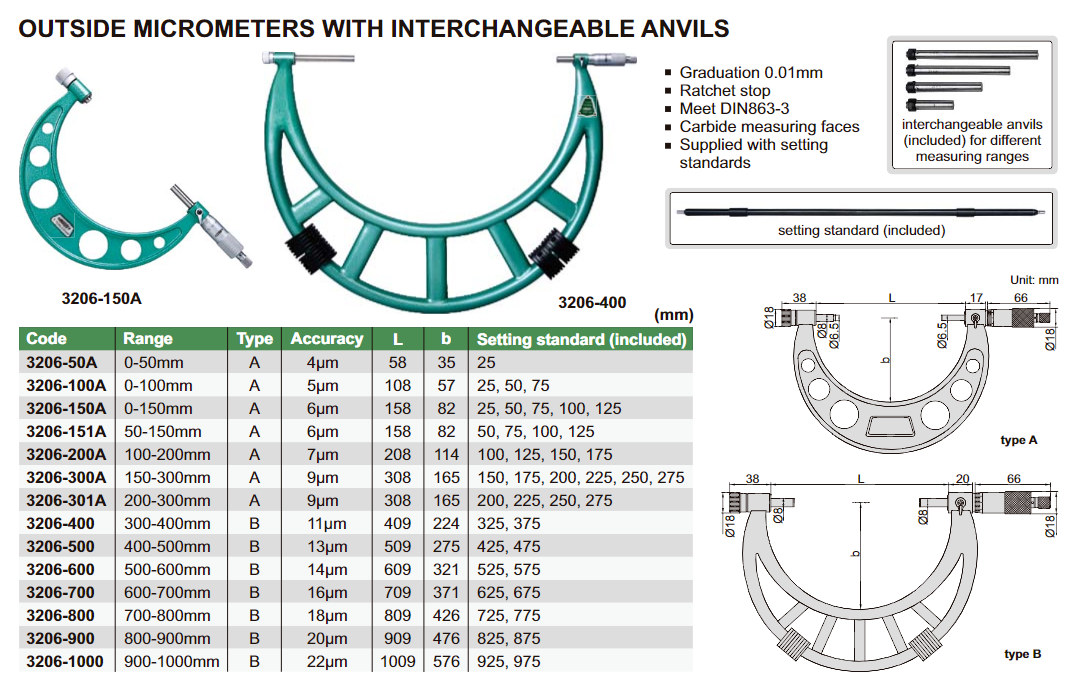 INSIZE 3206-900 Mikrometr třmenový 800-900mm / 0,01 mm