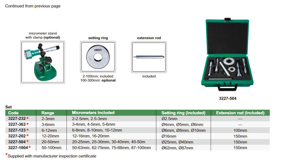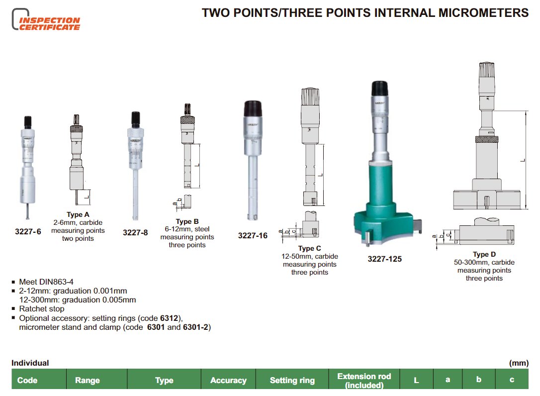 INSIZE 3227-123 sada 6-12mm analogových tříbodových dutinoměrů