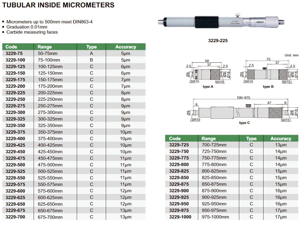 INSIZE 3229-625 Přesné dvoudotekové mikrometrické odpichy 600-625mm / 0,01mm