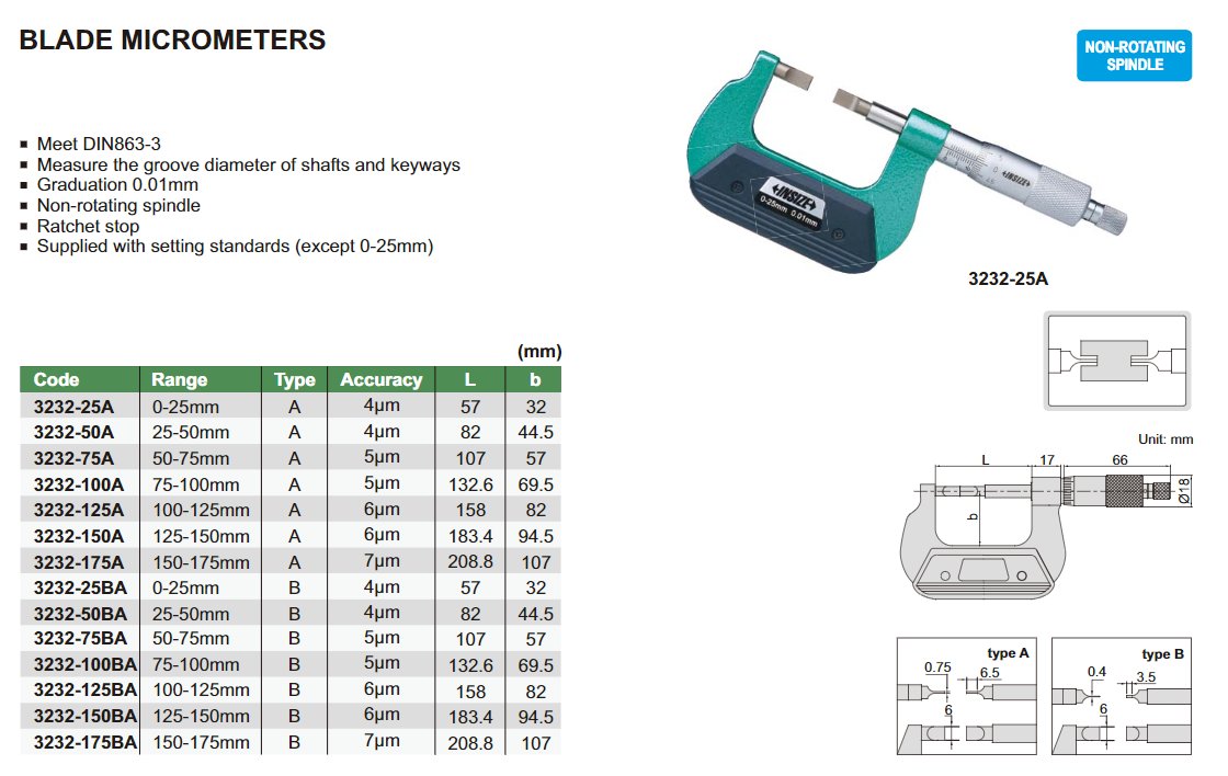 INSIZE 3232-50BA mikrometr s úzkými měřícími plochami