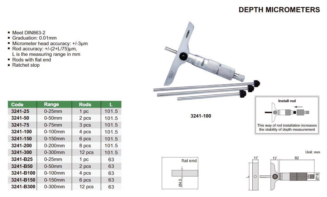 INSIZE 3241-200 Mikrometrický hloubkoměr 0-200mm
