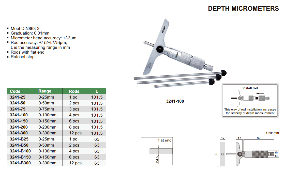 INSIZE 3241-300 Mikrometrický hloubkoměr 0-300mm