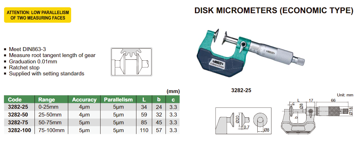 INSIZE 3282-75 analogový mikrometr talířkový 50-75mm / 0,01 mm