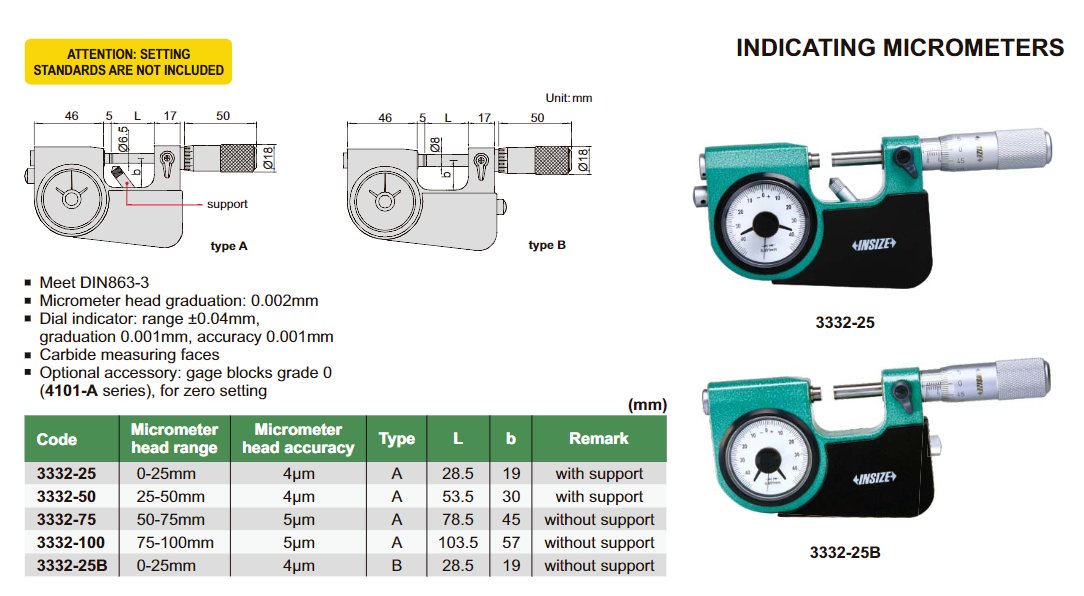 INSIZE 3332-75 mikrometr s číselníkem 50-75mm / 0,002mm