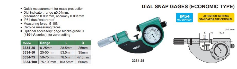 INSIZE 3334-100 analogový pasametr 75-100mm