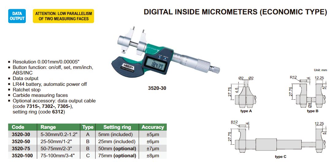 INSIZE 3520-50 digitální vnitřní mikrometr 25-50mm, odměřování 0,001mm / 0,00005\"