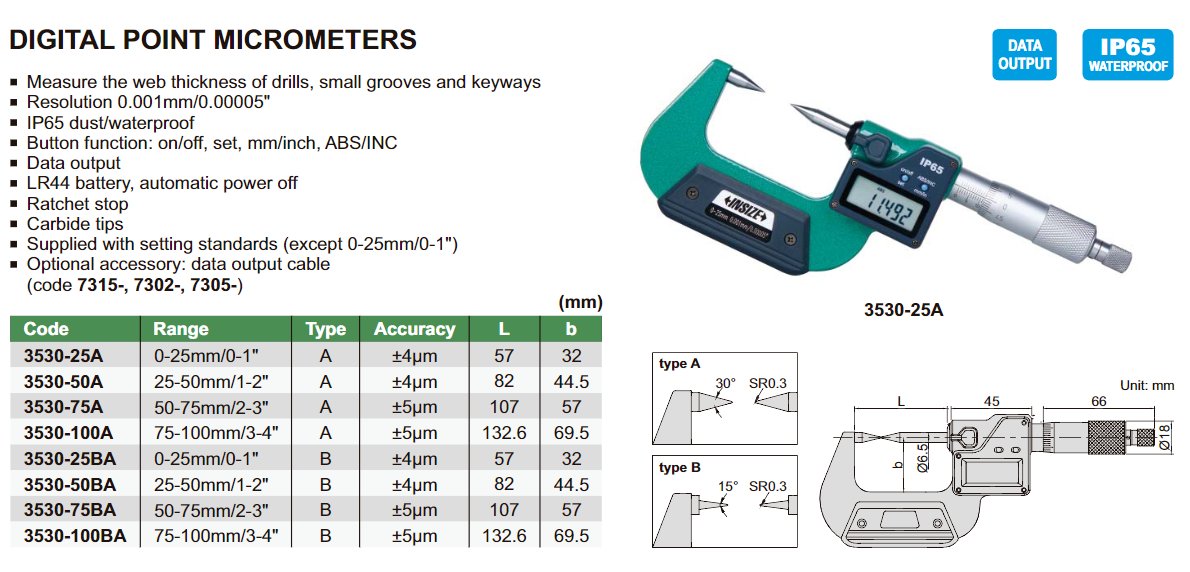 INSIZE 3530-50BA digitální mikrometr s bodovými doteky