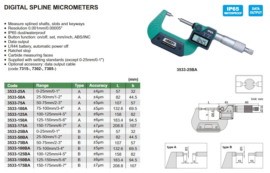INSIZE 3533-100BA digitální mikrometr na drážky