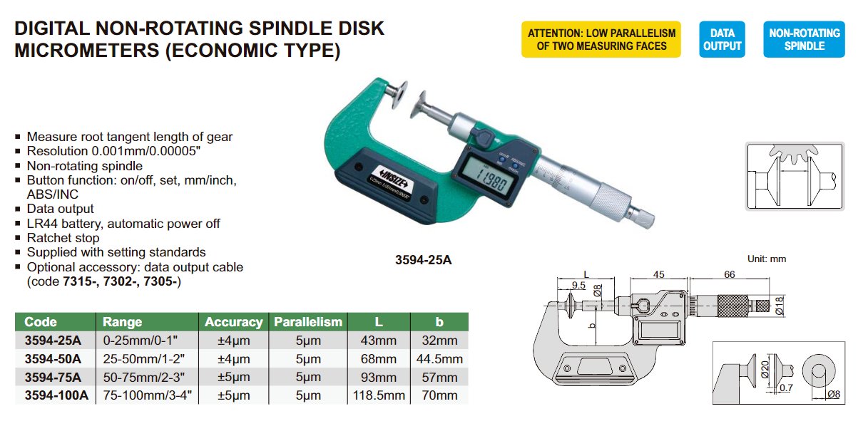 INSIZE 3594-50A digitální mikrometr s kruhovými doteky