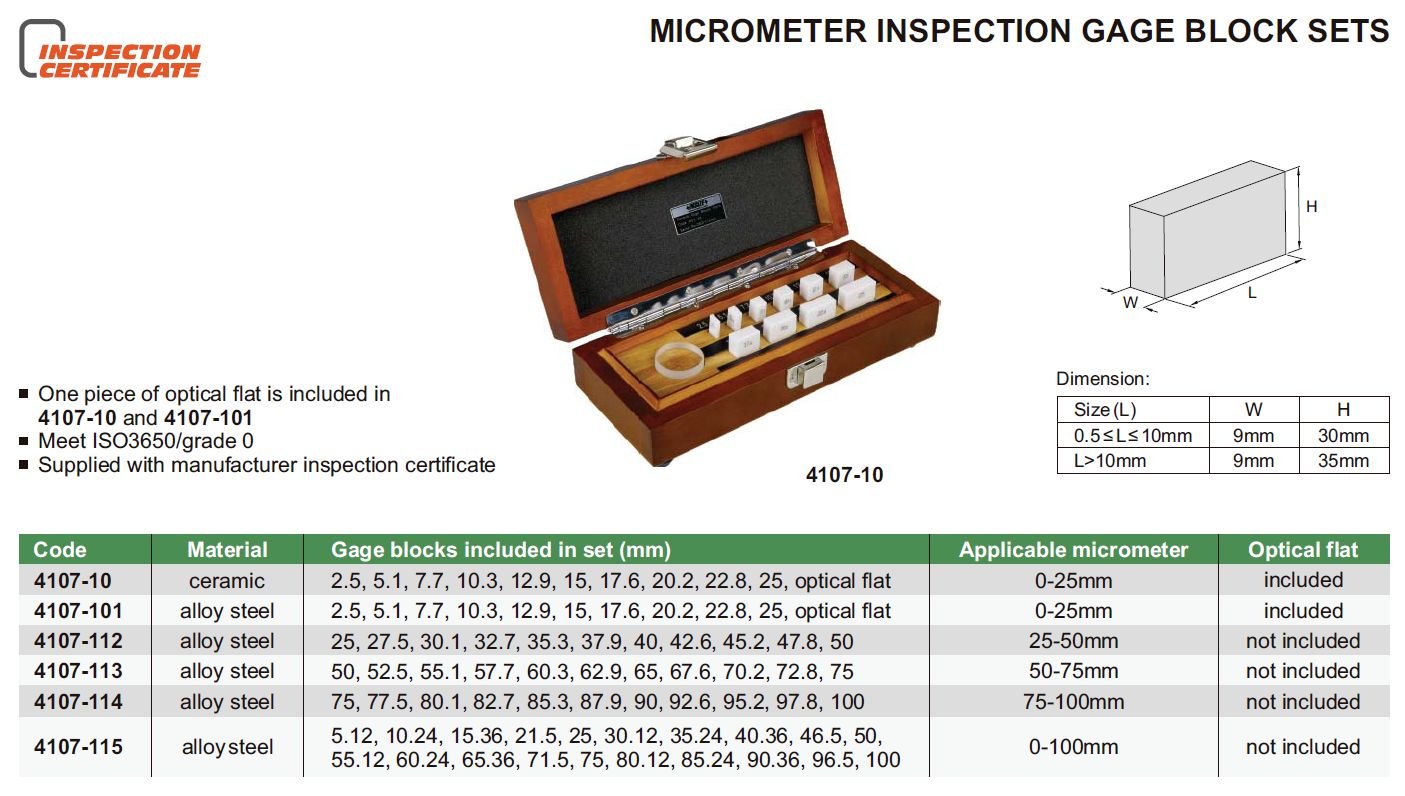 INSIZE 4107-113 sada pro kontrolu mikrometrů 50-75mm tř. 0