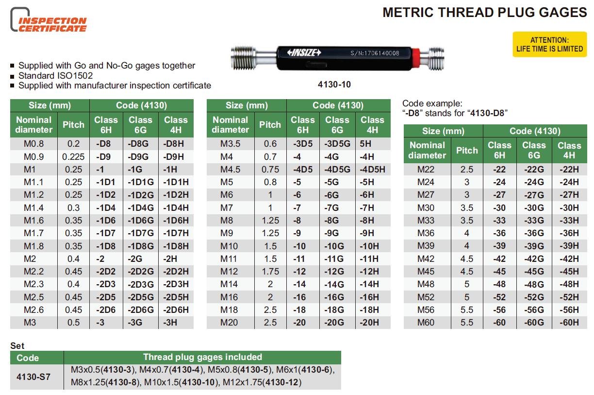 Závitový kalibr INSIZE - Metrický závit.Tolerance závitu 6H
