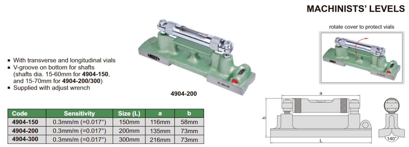 Základní údaje : Možnost natočení hlavní libely. Dvě libely ( příčná + podélná ) Rozměry 300x216x73 mm Podélná V drážka pro měžení rovinností u hřídelí Informace o produktu viz. přiložený katalogový list.